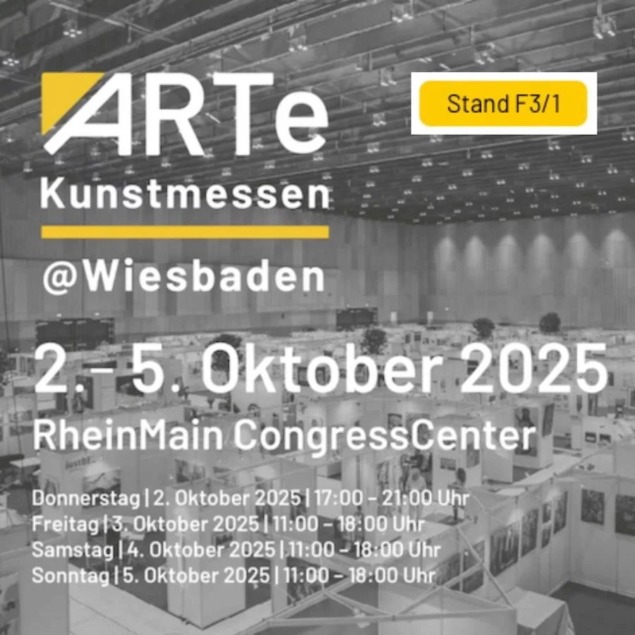 ARTe Kunstmesse Wiesbaden at the RheinMain Congress Centre. 140 selected galleries and artists from across Germany and other European countries will exhibit their art within a magnificent 5,000 square metre venue. The core idea of ARTe has always been an open exhibition format, providing a marketplace of artistic diversity, and a meeting place for art enthusiasts and art lovers. In an open, airy and casual exhibition ambience, ARTe becomes an art experience in itself.